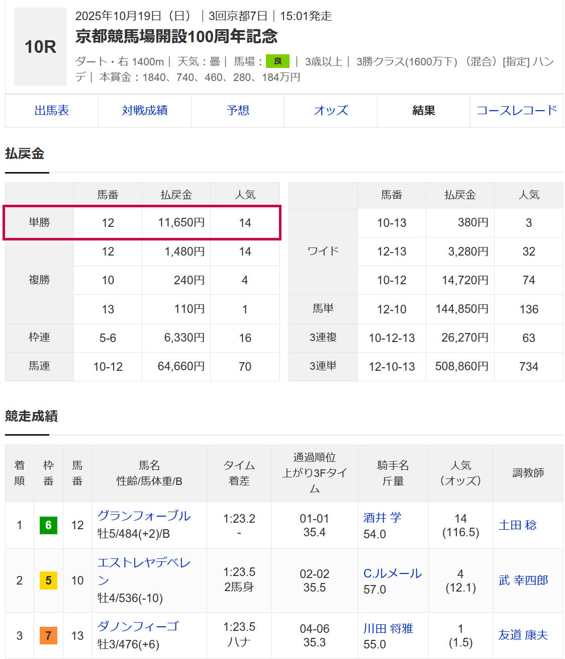 2025年は、単勝と馬連でもこのような美味しい配当を仕留めています。