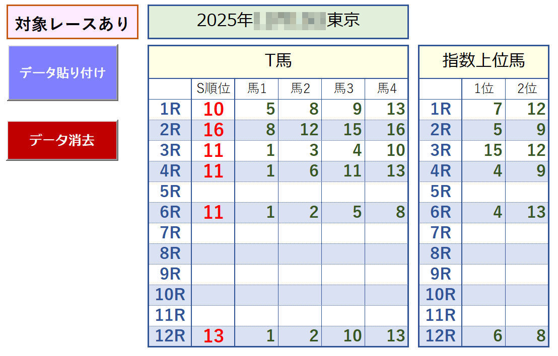 このANAツールは、コンピ指数をコピーし、ボタン一つで貼り付けると一発で対象レースと買い目を表示。